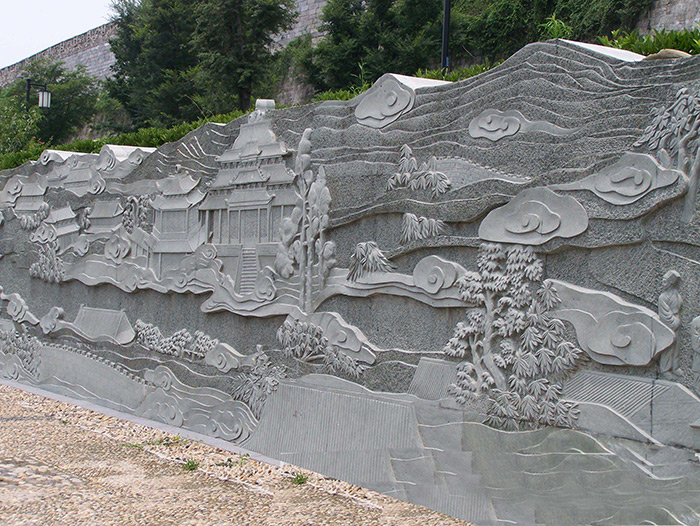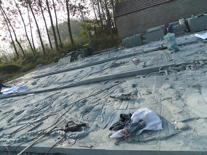 劉公祠(紀念大明名臣劉伯溫祠堂)巨型青石花崗巖浮雕制作中