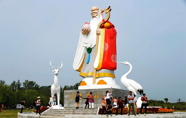 老壽星雕塑,高11.8m,不銹鋼烤漆,安裝地點在鹽城。