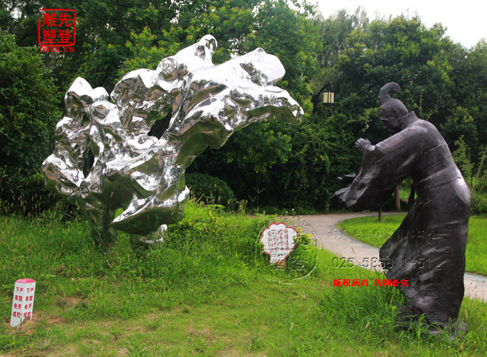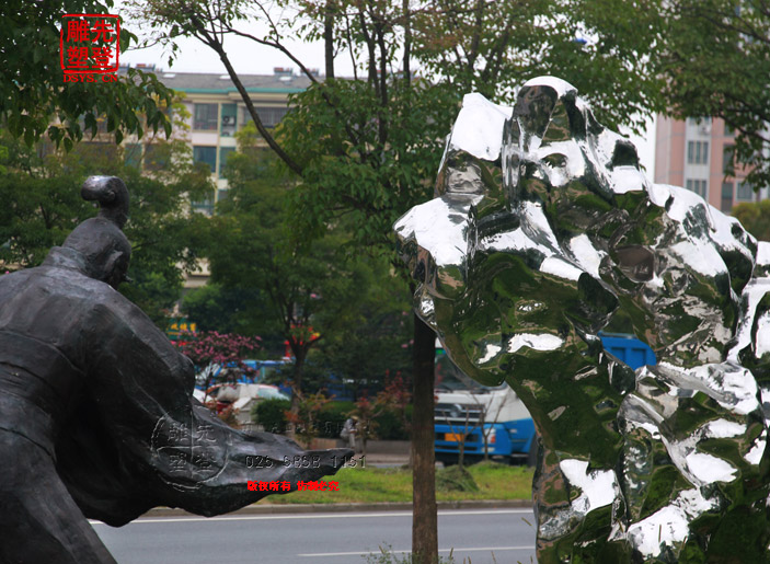 米芾拜石太湖石鏡面光雕塑現貨人物銅雕